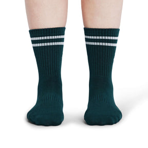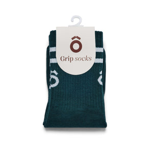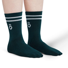 ÔWEAR Crew Sporty Stripes Pilates Grip Socks - Forest Green
