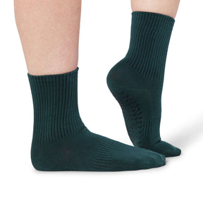 Sla een voorraadje in van onze antislip, zachte katoenen Reformer Pilates sokken in bosgroen, met extra gripvaste zolen voor een perfecte houding en om je letterlijk met beide benen op de grond te houden.