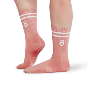ÔWEAR Crew Sporty Stripes Pilates Grip Socks - Rose Pink