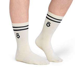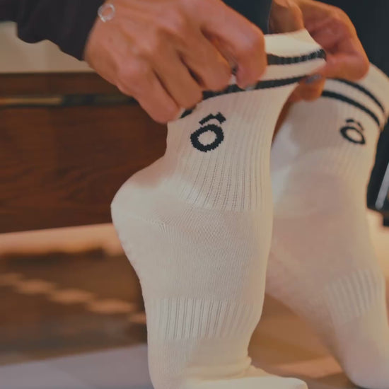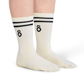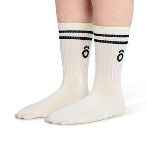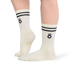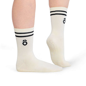 ÔWEAR Crew Sporty Stripes Pilates Grip Socks - White